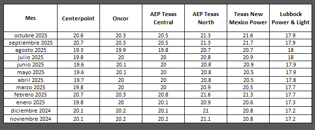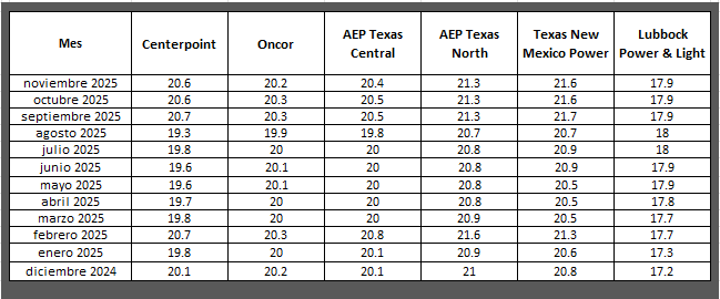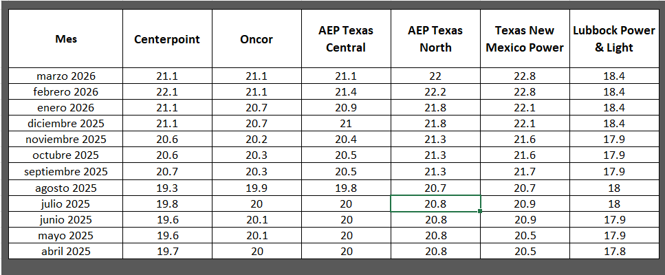 Los datos reflejan el precio promedio que los clientes pagan por el producto de precio variable Smart Flex a partir del último día del mes señalado. Como este es el precio promedio de todos los clientes que están actualmente en un plan mensual, es posible que a algunos de ellos se les cobre un precio más alto o más bajo que el que se indica a continuación. Esta información no debe utilizarse para predecir precios a futuro.