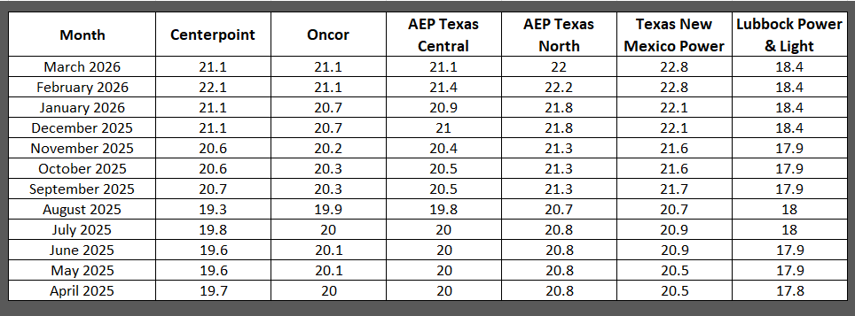 The data reflects the average price customers are paying for the Smart Flex variable price product as of the last day of the noted month. Because this is the average price of all customers currently on a monthly plan, some customers may be charged a price that is higher or lower than the price listed below. This information should not be used to predict future pricing.