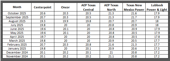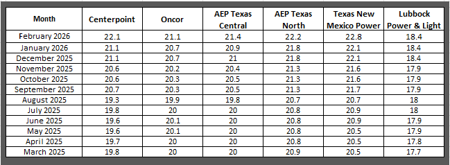 The data reflects the average price customers are paying for the Smart Flex variable price product as of the last day of the noted month. Because this is the average price of all customers currently on a monthly plan, some customers may be charged a price that is higher or lower than the price listed below. This information should not be used to predict future pricing.